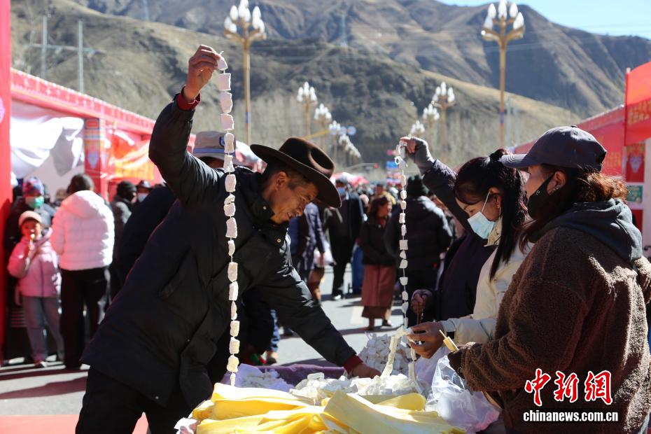 2月2日,西藏自治区山南市琼结县2026年“幸福琼结·优享年货”促消费暨展销活动在朗热大道启幕,为春节、藏历新年预热添彩。本次活动由琼结县投入200万元人民币打造,为期7天,吸引103家商户入驻,其中73家为本地商户,带来150余种特色商品,高原农产、藏式手工艺品、传统年货齐聚现场,尽显藏地年味。活动推出农业银行掌银立减优惠,民众无需领券即可享实惠,现场还设置咨询台与宣传点,切实保障消费安全。图为民众在选购奶渣。伦珠泽仁 摄