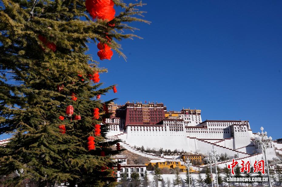 2月3日,西藏拉萨布达拉宫广场,红灯笼装点节日氛围。随着春节、藏历新年的临近,拉萨城区大街小巷被精心装点,年味愈发浓郁。中新社记者 李林 摄