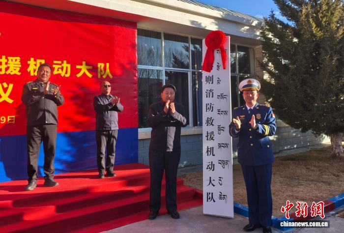 图为日喀则消防救援机动大队正式挂牌。洛桑顿珠 摄