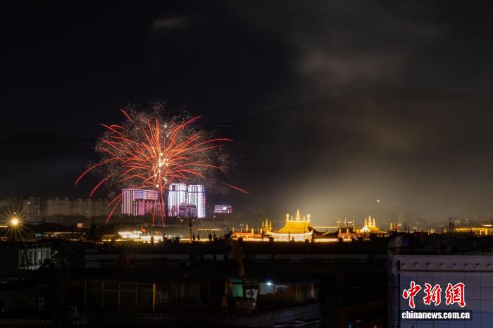 图为2月16日晚,古城拉萨烟花烂漫。中新社记者 江飞波 摄