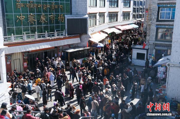 图为2026年2月13日,藏历新年前夕,拉萨传统年货市场冲赛康市场周边人流如织。江飞波 摄