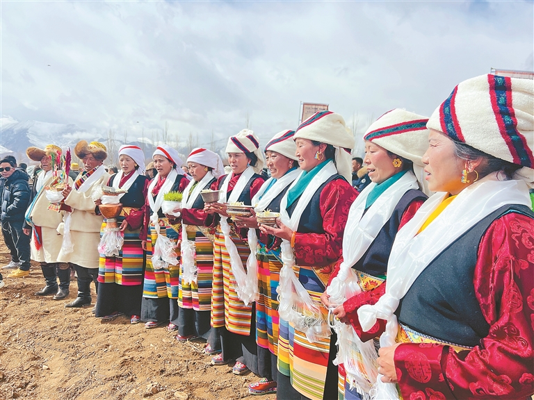 春耕春播仪式上,村民们高举青稞酒,唱响吉祥歌,祈愿五谷满仓、农事顺遂。记者 央金 摄