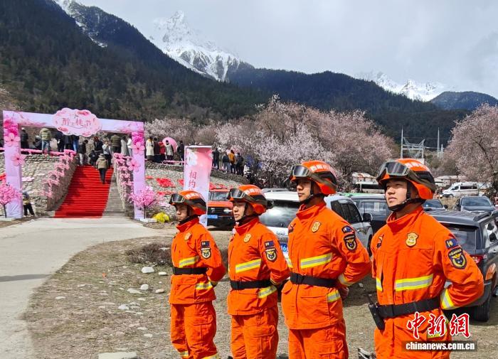 西藏林芝第二十三届桃花旅游文化节波密县分会场活动1日在波密县波茂广场开幕。为保障活动安全有序开展,连日来,波密消防救援机动大队一中队联合波密县应急管理局,深入波密县桃花沟景区开展防火宣传与执勤工作,守护春日花海安全。