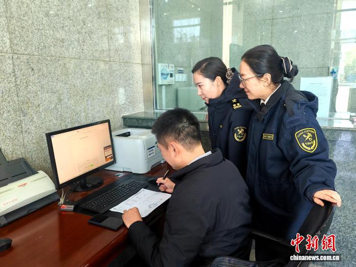 图为海关工作人员提供相关服务。拉萨海关 供图