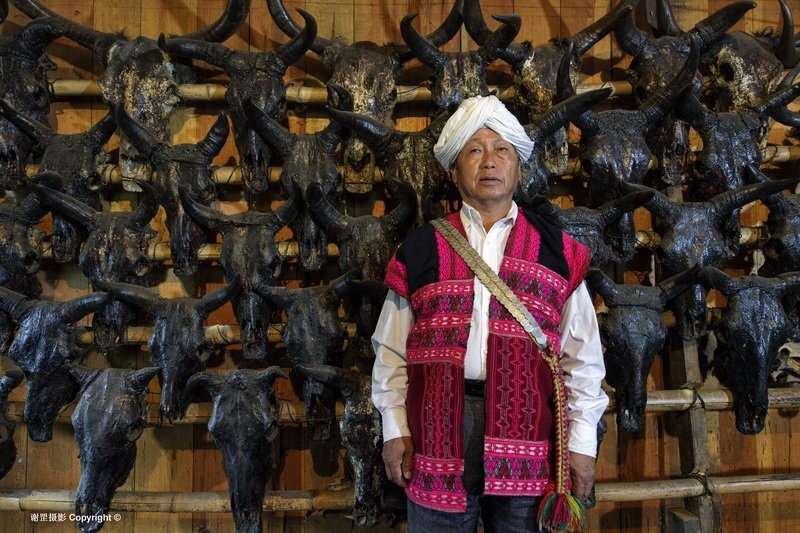 下察隅镇是察隅县的一道景,而僜人文化则是察隅县的一张名片,宣传报道僜人文化的多,因而,这次我把主要精力放在了扩展了解下察隅其它区域的情况上。只是天下无巧不成书,到达下察隅镇时正值中秋节,竟然在街上就碰上了做中秋客的僜人头人阿鲁松。三年未见阿鲁松,看上去没什么变化,头裹白头帕,腰挎头人刀,只是一身笔挺的蓝色西装,胸上还别有胸花,显得有些现代。“您还是那么年轻”,“哪里,只有不变的心,那有不变的容颜。不过,我告诉你,我还是挺注意保养的。”阿鲁松笑着用他特有的“僜人北京话”回答我,阿鲁松幽默的“京腔”展现了他一直的年轻心态。他接着告诉我,他还是“老一套”,继续当人大代表,任沙琼村村委会的主任,另一方面还是做头人,做好事善事,只是家里的牛头架又多了几个牛头。他告诉我僜人的“大耳洞”习俗渐渐的要消失了,“大耳洞”现健在的两个老人中,沙琼村的阿鹏娘己近八十岁身体很不好,新村的玛牛龙八十多了,走路都成问题。于是,我们来到僜人新村,找到玛牛龙老人留下了或许是僜人“大耳洞”习俗的最后图片。76岁的阿琼乐老人是过去僜人的巫师,现在很少有人去占卜算卦,只是作为僜人的文化符号与一般老人一样愉快的生活着。新村邻近的巴安通村、夏尼村都是僜人村,各自都保持着自己特有的僜人服饰、饮食和语言文化,印象深刻的是村支书金夏的僜人泥塑,房前屋后的廊道里放满了各式形态的泥人,遗憾没有见到金夏,他的儿子告诉我,这是通过泥人还原僜人曾经在深山老林里的原始场景。当地白泥配以颜料塑造的泥人保持着古朴的原始艺术特点,形态姿势不同,配以竹石泥构建的房屋、火塘、物具,生动的再现了僜人古老的打猎捕鸟,钻木取火,杀牛争头,绳结记事,养畜造房等原始场景。