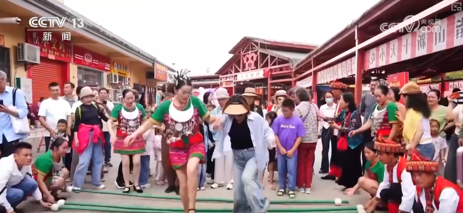五指山的年味不只要品出来,更要动起来。在这里,最受欢迎的就是竹竿舞,这些清脆的声音像新年的节拍,在这里快乐是可以实实在在被“夹”出来的。
