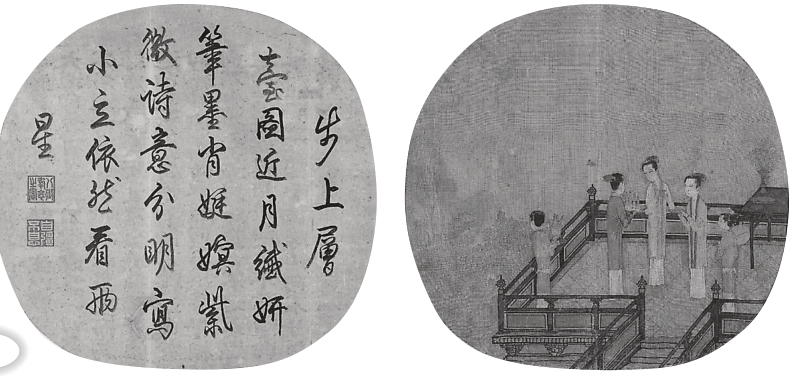 《梅月嫦娥图》(扇页,局部)费以耕、张熊绘