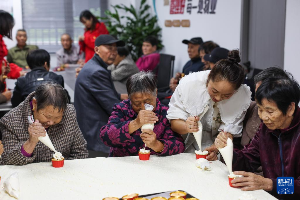 10月21日,志愿者在教老人制作纸杯蛋糕。新华社记者 徐昱 摄