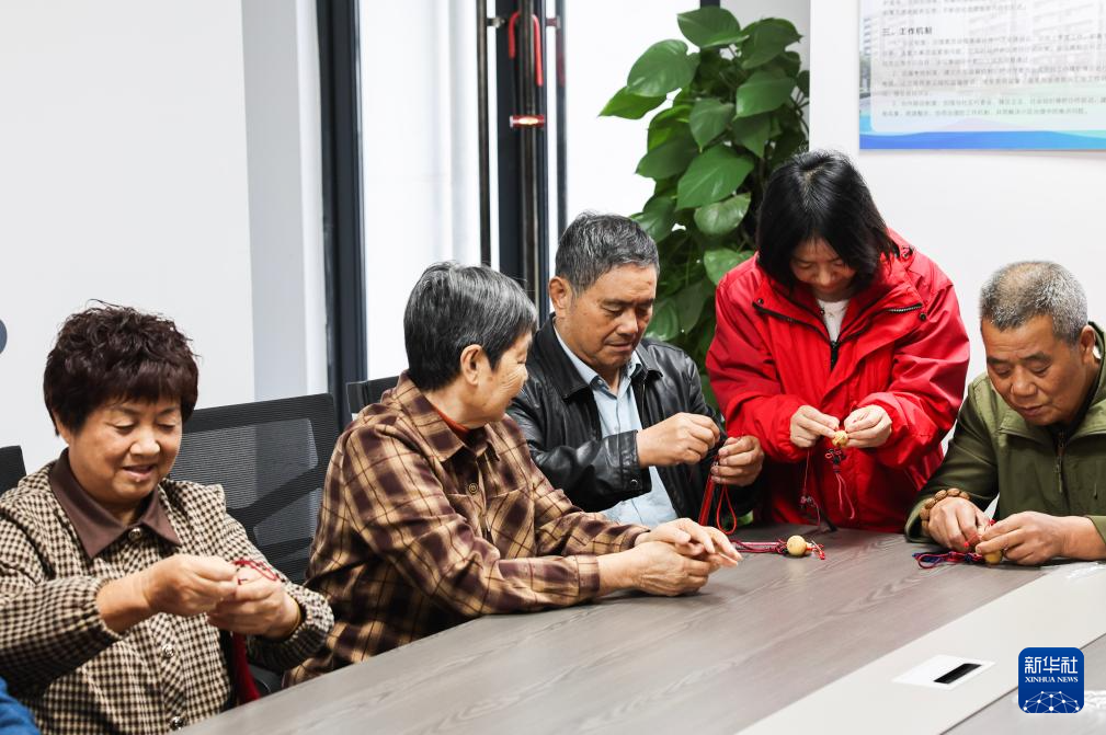 10月21日,志愿者教老人制作小葫芦挂件。新华社记者 徐昱 摄
