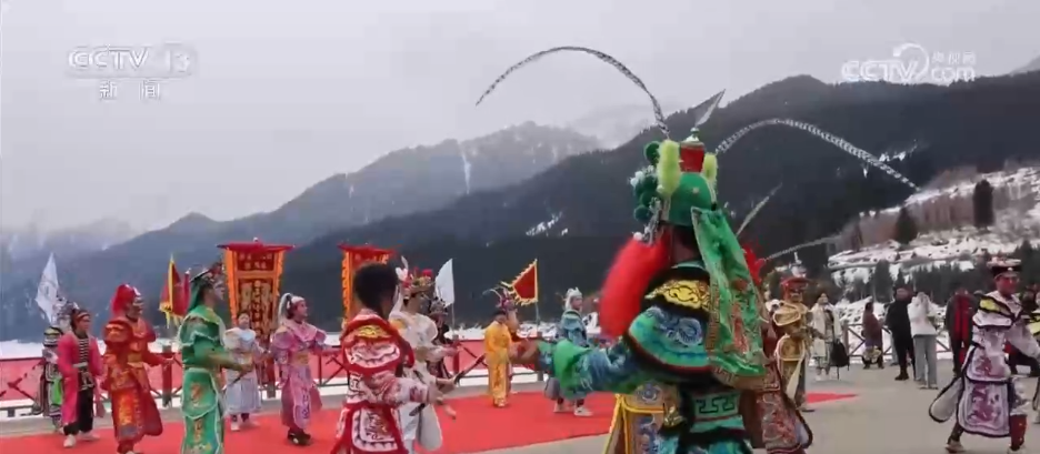 元宵节到来之际,新疆天山天池景区上演了一场南北文化相逢的精彩演出,广东英歌舞邂逅西北的高山湖泊,为游客营造出独特的节日氛围。