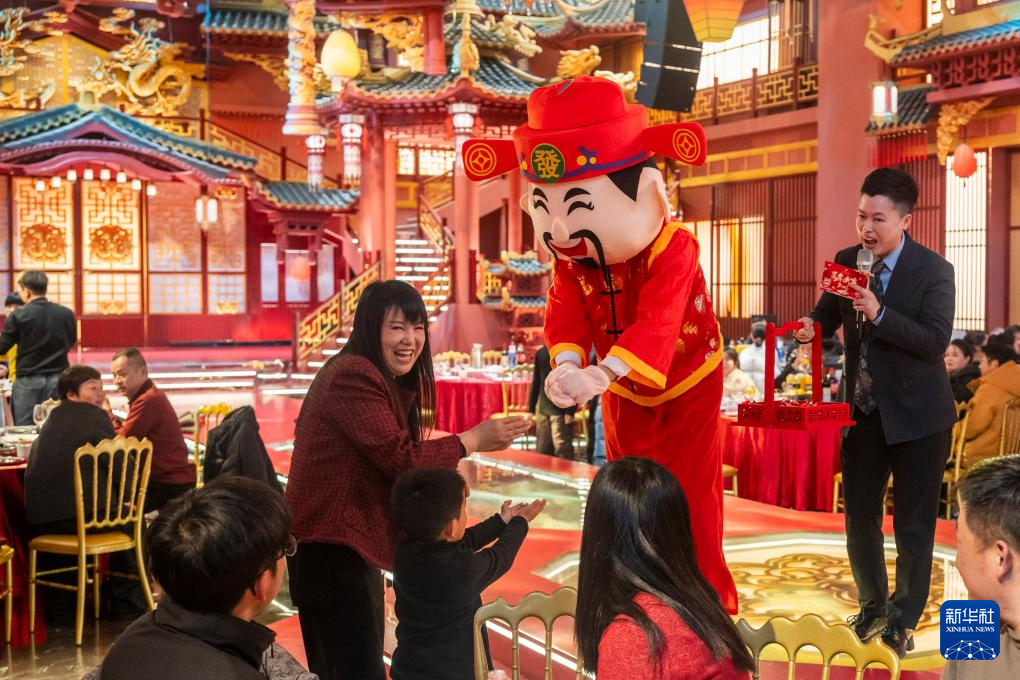 2月16日,人们在安徽省芜湖市繁昌区繁阳镇一家酒店内吃年夜饭。新华社发(肖本祥摄)