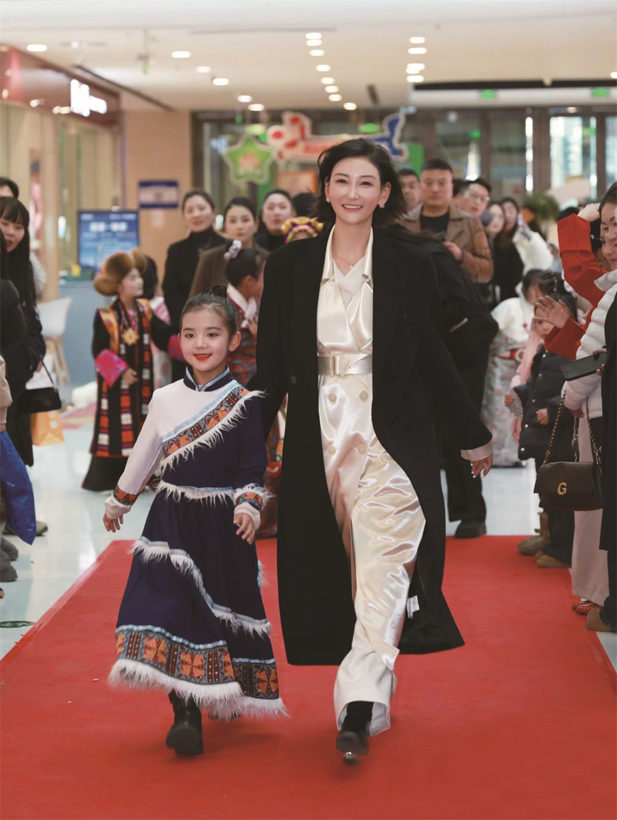 洛桑卓玛与童模一起走秀。德吉卓玛供图
