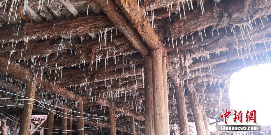 图为盐田房内顶部到处悬挂的钟乳晶盐。中新网记者 吉翔 摄