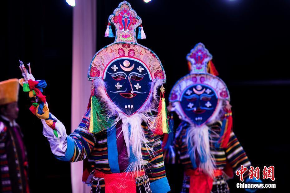 图为藏戏蓝面具表演。中新社记者 何蓬磊 摄