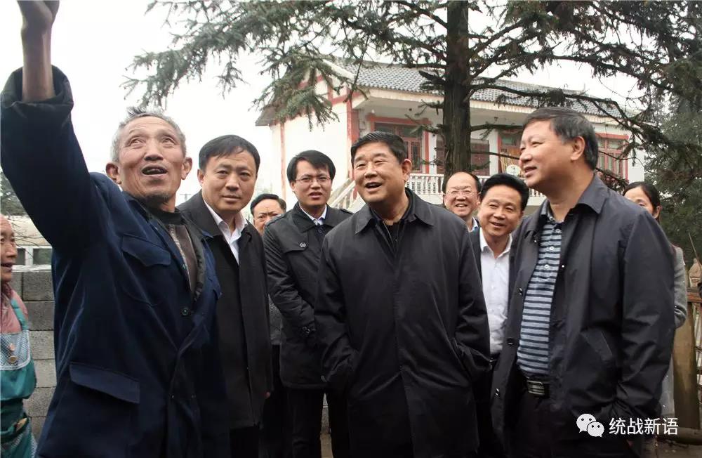 2017年8月,中央统战部副部长、全国工商联党组书记、常务副主席徐乐江在织金县熊家场乡认真倾听参与“百企帮百村”精准扶贫行动的民营企业帮扶贫困村的介绍