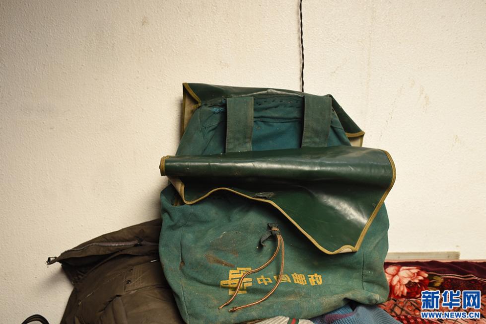 白玛江才现在每周使用的送邮袋(5月9日摄)。这是近40年来白玛江才使用过的第三个送邮袋,他的第一个送邮袋是双肩背包式的。新华网 马艺萌 摄