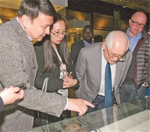 商代的药碾、古老的中医牌匾、右手捧灵芝的明代神农雕像、出诊用的木药箱等传统用具……置身博物馆,仿佛穿越时空,重回到几百年前的明清时代老药铺(见图,代表们观看明清时代的针灸用具。本报记者暨佩娟摄)。一块褐色的丝绸手帕,吸引了嘉宾们的注意。这是辽代医生用来包针筒的手帕,手帕上的图案是一个人手执缰绳,牵着7匹骆驼在沙漠中跋涉。当年,古丝绸之路上繁荣的贸易往来,也促进了中国与中亚、西亚国家医药文化的交流。