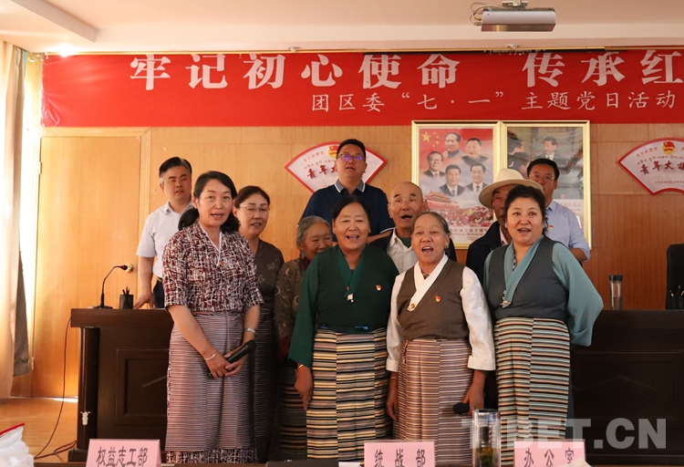 在西藏团区委此次“七 一”主题党日活动中,邀请西藏社科院专家讲授了《习近平新时代中国特色社会主义思想学习纲要》;为先进党支部、优秀党务工作者、优秀共产党员和“学习强国 学习标兵”获得者颁奖;党员代表带领大家朗读《党章(选段)》、重温入党申请书,退休老同志带领大家合唱歌曲《唱支山歌给党听》。随后,全体党员干部前往谭冠三纪念园,向谭冠三将军墓敬献花篮、缅怀默哀、重温入党誓词,并以现场党课的形式,重温“特别能吃苦、特别能战斗、特别能忍耐、特别能团结、特别能奉献”的老西藏精神,党员干部还分享交流了自己对老西藏精神的认识和感悟。