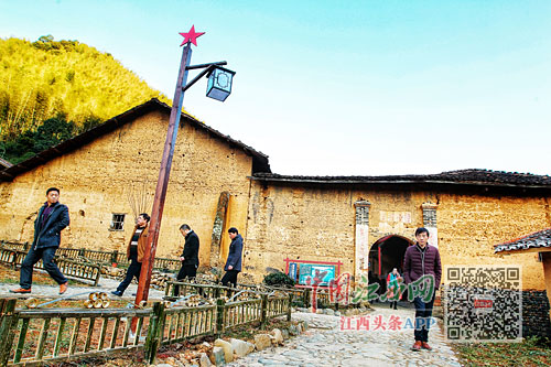 德兴市绕二镇花林村广财山,游客前来红色小镇游玩。德兴市利用存留的革命旧址资源,打造主题鲜明的红色小镇,带动乡村旅游发展。 记者 徐 铮摄