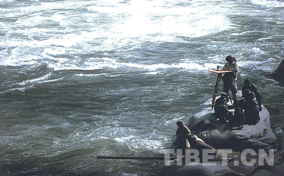 在雅鲁藏布江面测量流速 郭长福/摄影