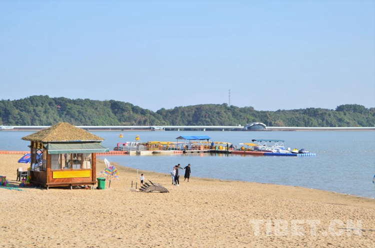 图为柳叶湖的人造沙滩 摄影:欧帆