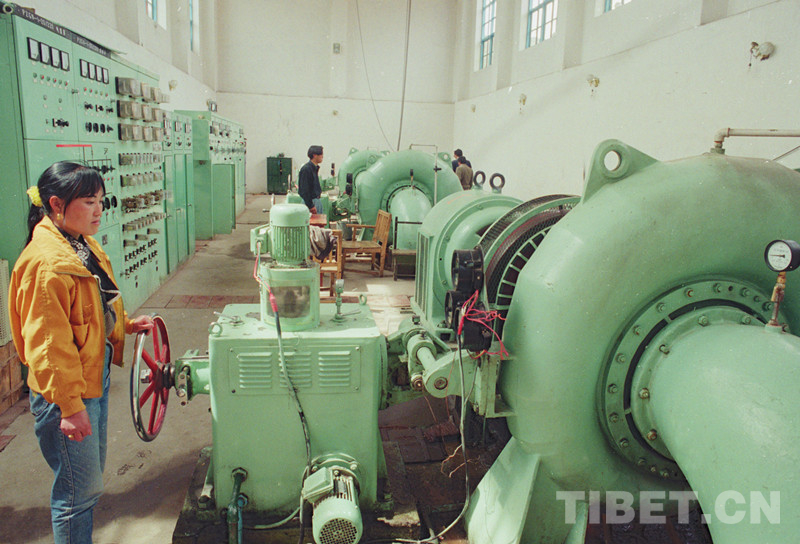 这是巴青县水电站机房人员在工作。该水电站由吉林省援建(唐召明1997年摄)