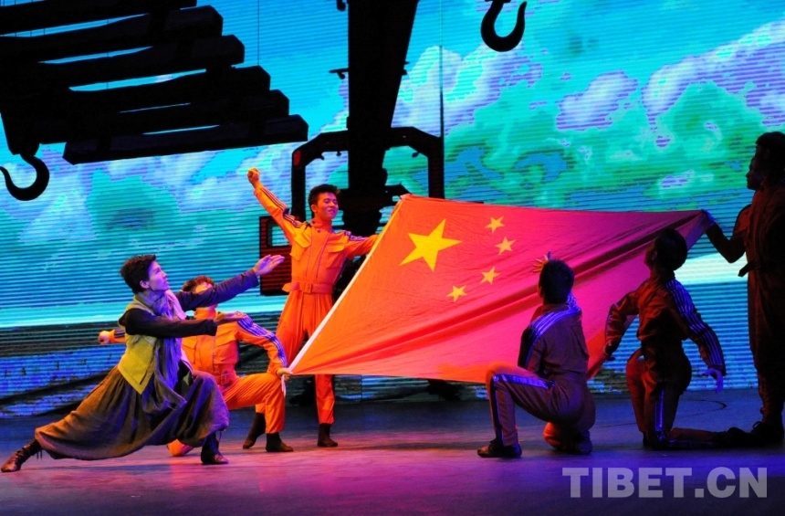 图为《圆梦》歌舞剧在国家大剧院的演出剧照——青藏铁路成功铺轨(唐召明2015年10月13日摄)