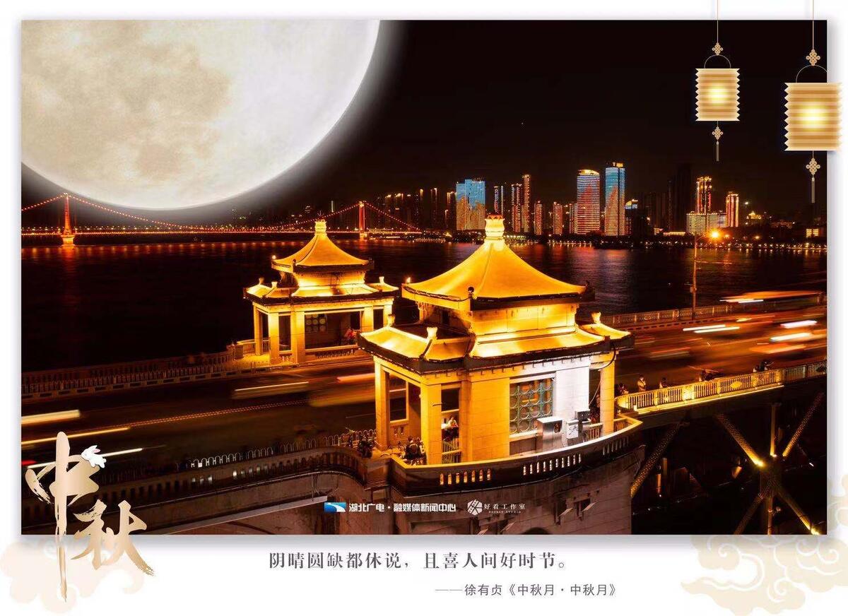 一起沿着武汉江边看月亮