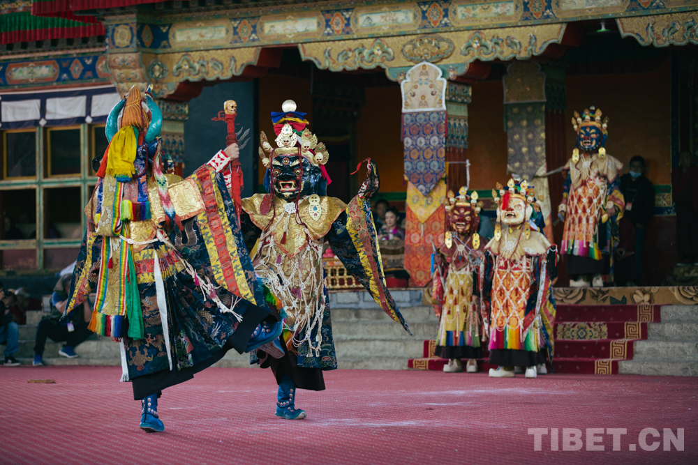 图为扎什伦布寺僧人表演“跳神” 摄影:郑朔