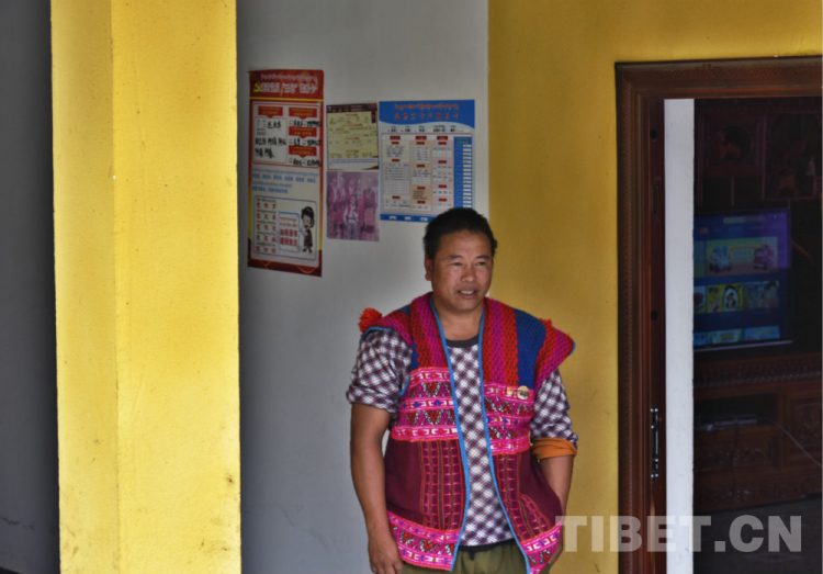 图为西藏自治区林芝市察隅县下察隅镇新村村委会主任达永华在自家门口 摄影:王媛媛