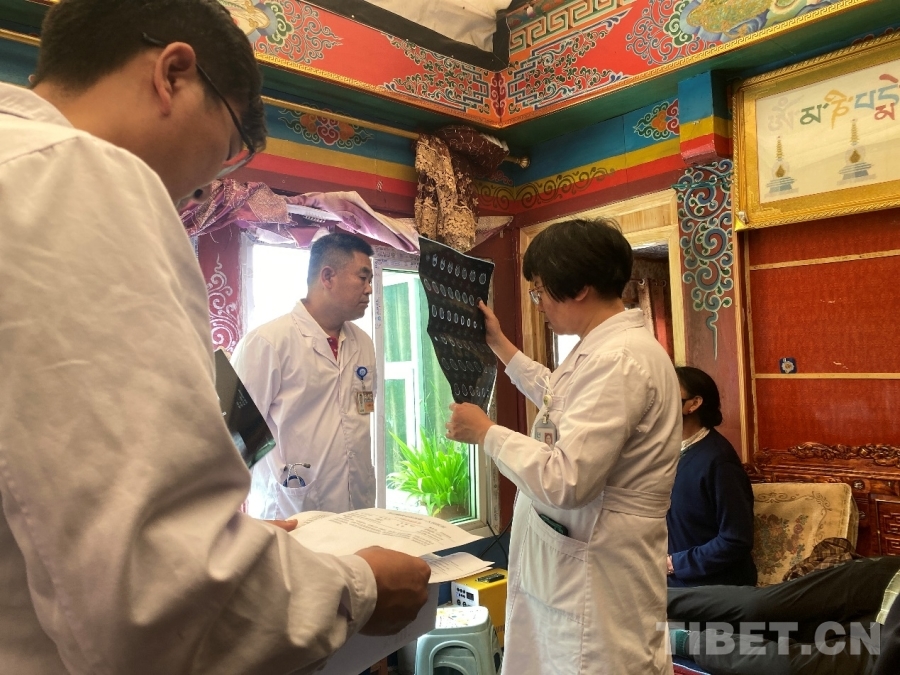 图为医生们正在查看患者以往病历和诊断结果 摄影:格桑