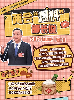 3月5日,“部长通道”采访活动中,农业农村部部长唐仁健表示 受疫情、灾情叠加影响,去年1/3面积冬小麦晚播,今年的苗情可以讲是历史上最差的,但我们有信心有决心打赢保夏粮夺丰收这场硬仗。