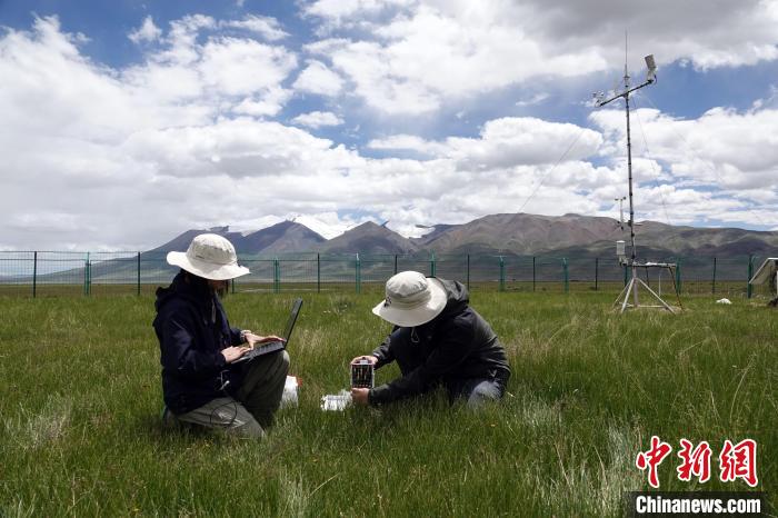 中国科学院申扎高寒草原与湿地生态系统观测试验站(申扎站)高寒湿地观测试验场,科研人员采集相关观测数据。中新网记者孙自法摄