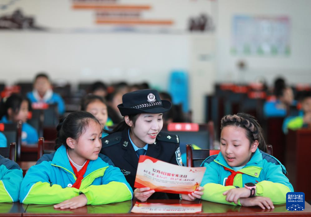 12月2日,民警在贵州省赤水市第二小学为学生普及宪法知识。