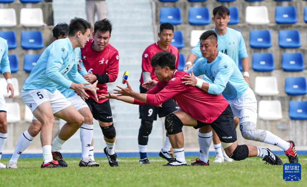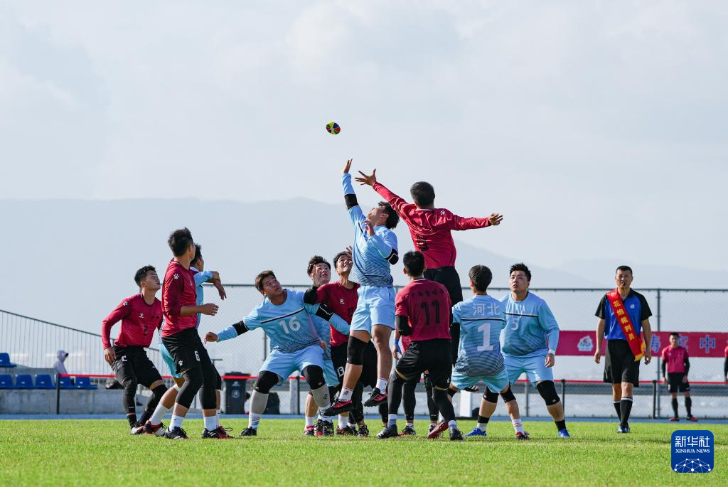 11月25日,广西队选手与河北队选手在比赛中争抢花炮。最终,广西队9比3战胜河北队。