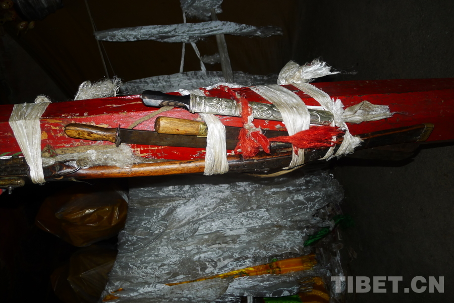 曾在抗英战争时使用过的武器,至今留存乃宁寺。摄影:平措扎西