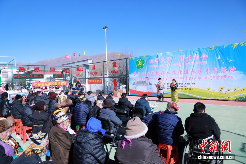 2月6日,春节、藏历新年来临之际,西藏拉萨市墨竹工卡县残疾人联合会在墨竹工卡县残疾人综合服务中心开展“残疾人文化进社区”活动,丰富残疾人精神文化生活,传递社会温情。活动现场张灯结彩,歌舞节目轮番上演,充分展现残疾人积极向上的精神风貌。工作人员为残疾人送上慰问品与双节祝福;义诊区提供健康检测、康复指导服务;手工艺展区陈列着残疾人制作的藏式手工艺品;趣味游戏区开展无障碍互动活动,现场欢声笑语不断。图为文艺演出现场。