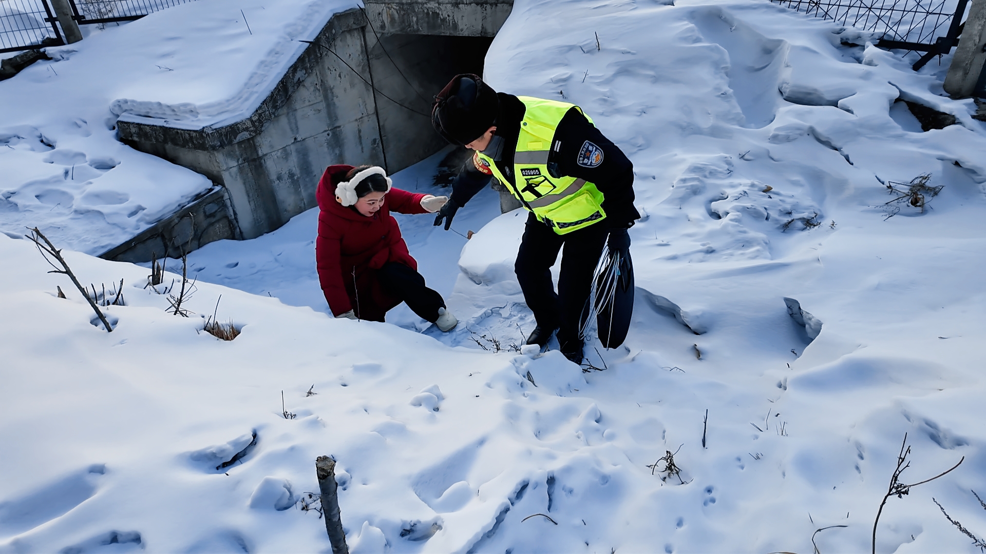 凌晨6时30分,我随老薛踏上巡线路。今年已57岁的老薛,在雪地中步履轻盈。积雪没踝,寒风如刃,仅走半公里我便双脚麻木。老薛负责安全巡视铁路沿线22公里,32年来踏过春雪、夏汛、秋霜、冬寒,日复一日从未停歇;独自驻站15年,3辆自行车被岁月磨坏。巡线时,他有一个时刻不离身的记录本,里面记录着每一处涵洞编号、每一段铁轨隐患。弯腰查涵洞时,警帽积雪簌簌滑落,身材并不魁梧的他双手布满老茧,在固定标语牌缠绕铁丝时异常有力。