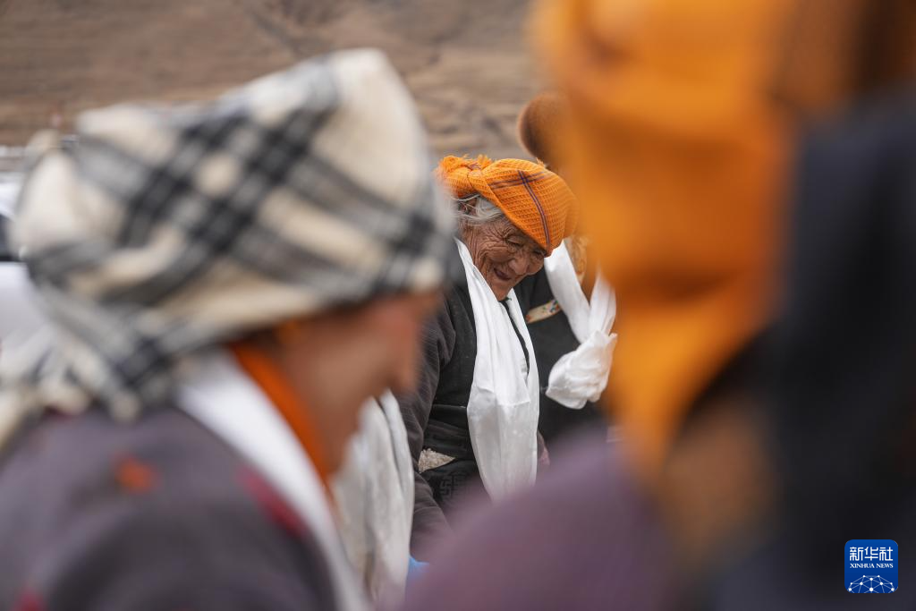 在春耕大典上,白姆老人和乡亲一起跳锅庄(3月16日摄)。新华社记者 晋美多吉 摄