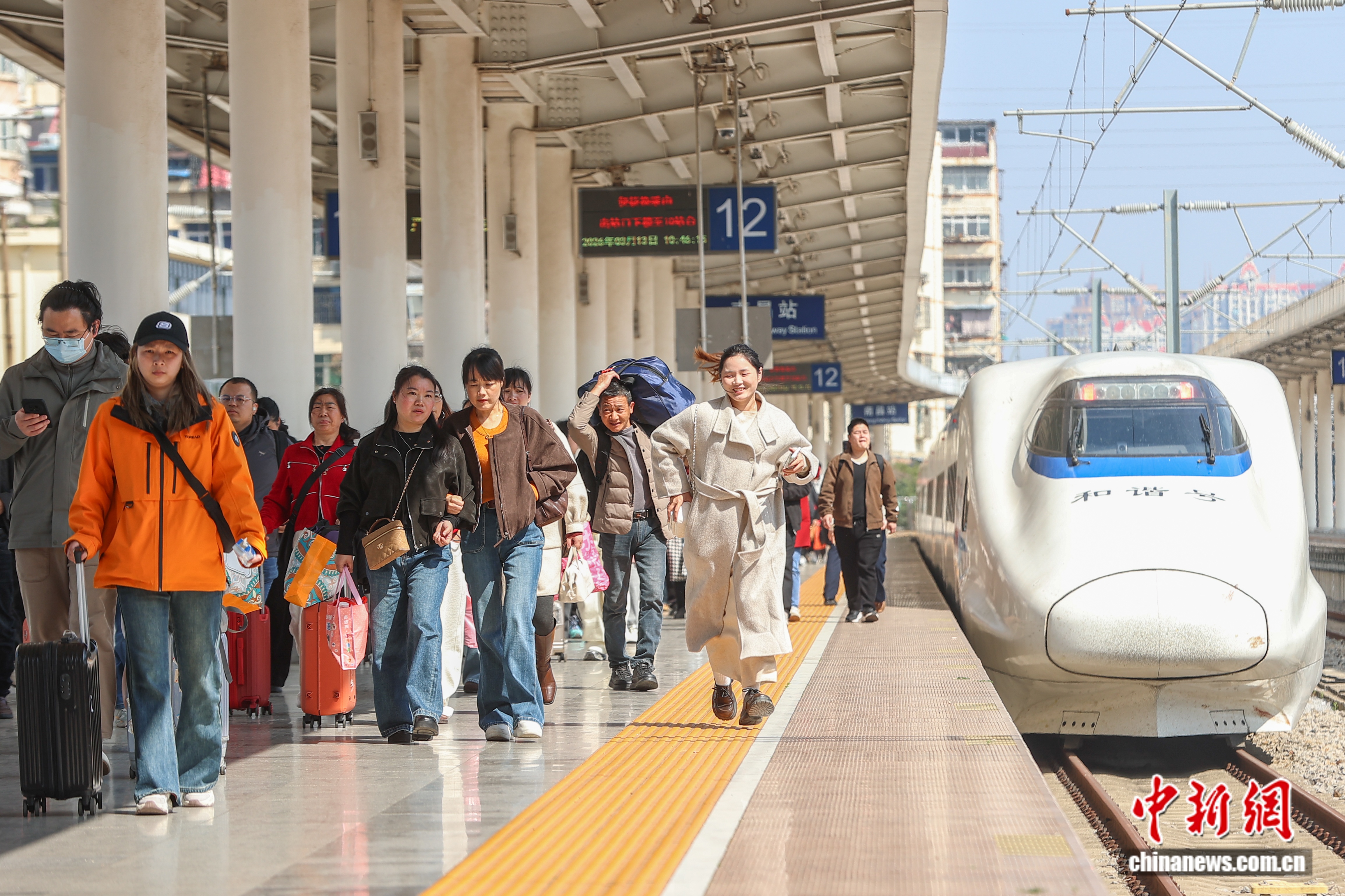 2026年3月13日,旅客在江西南昌站出行。 中新社记者 刘力鑫 摄