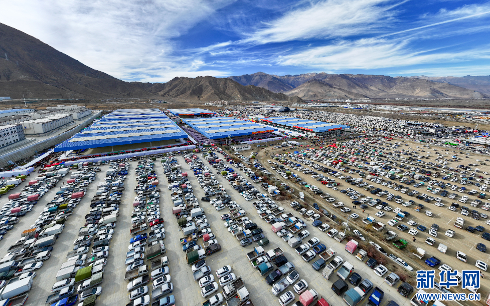 12月1日,西藏自治区山南市第45届雅砻物资交流会现场(无人机照片)。新华网 旦增努布 摄