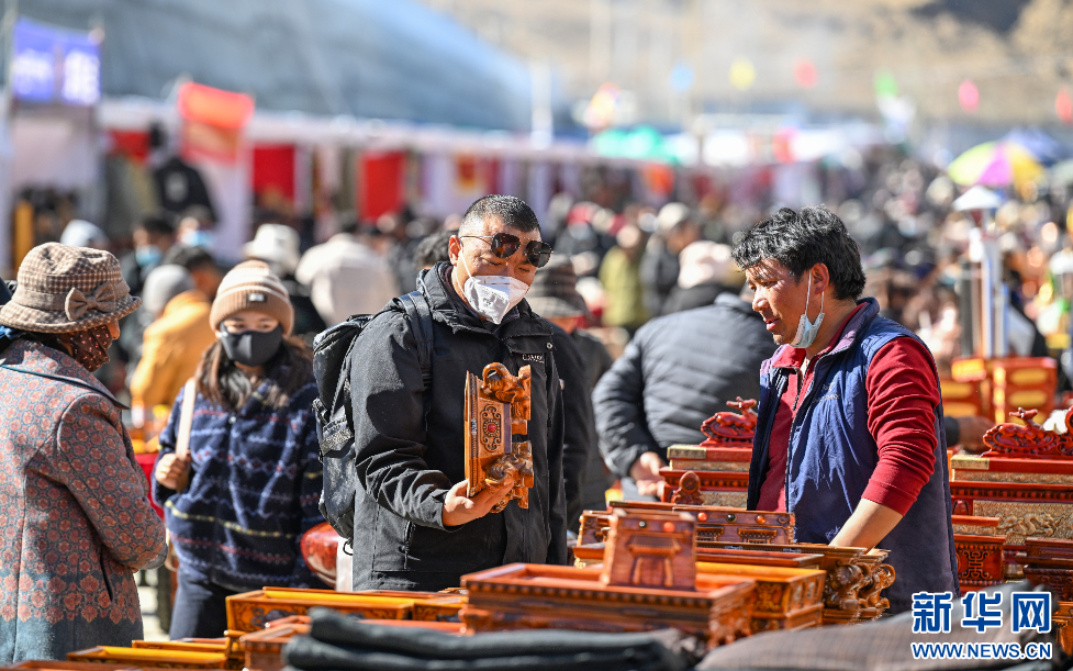 12月1日,市民在西藏自治区山南市第45届雅砻物资交流会现场挑选商品。新华网 旦增努布 摄