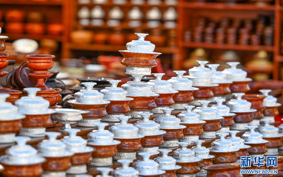 图为西藏自治区山南市第45届雅砻物资交流会上展示的木碗(12月1日摄)。新华网 旦增努布 摄