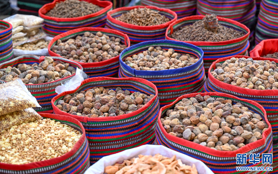 12月1日拍摄的西藏自治区山南市第45届雅砻物资交流会上当地出产的干果。新华网 旦增努布 摄