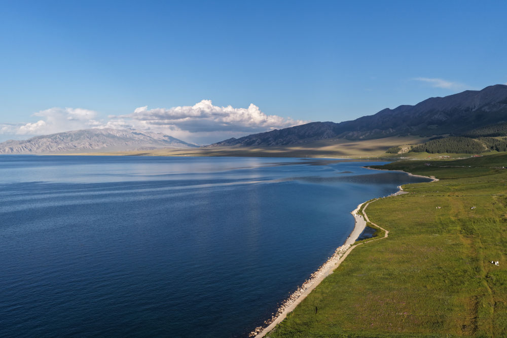 ↑ 赛里木湖景致(无人机照片,7月8日摄)。