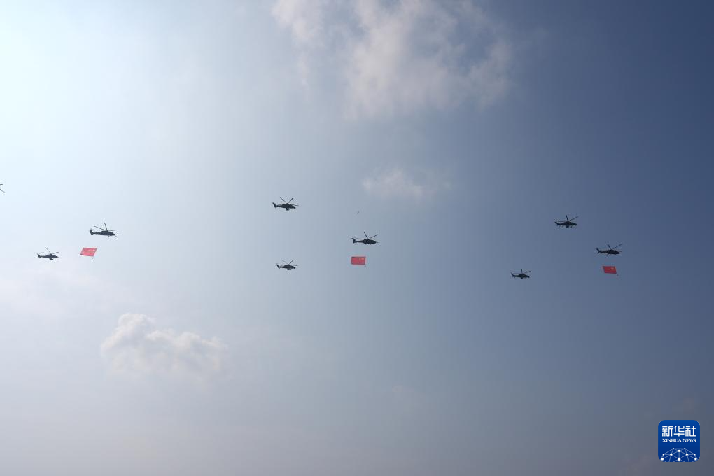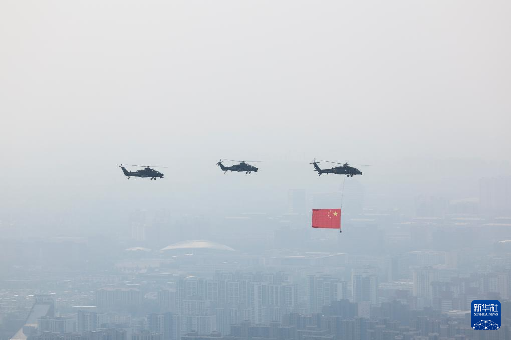 9月3日,纪念中国人民抗日战争暨世界反法西斯战争胜利80周年大会在北京隆重举行。这是空中护旗梯队通过天安门广场。