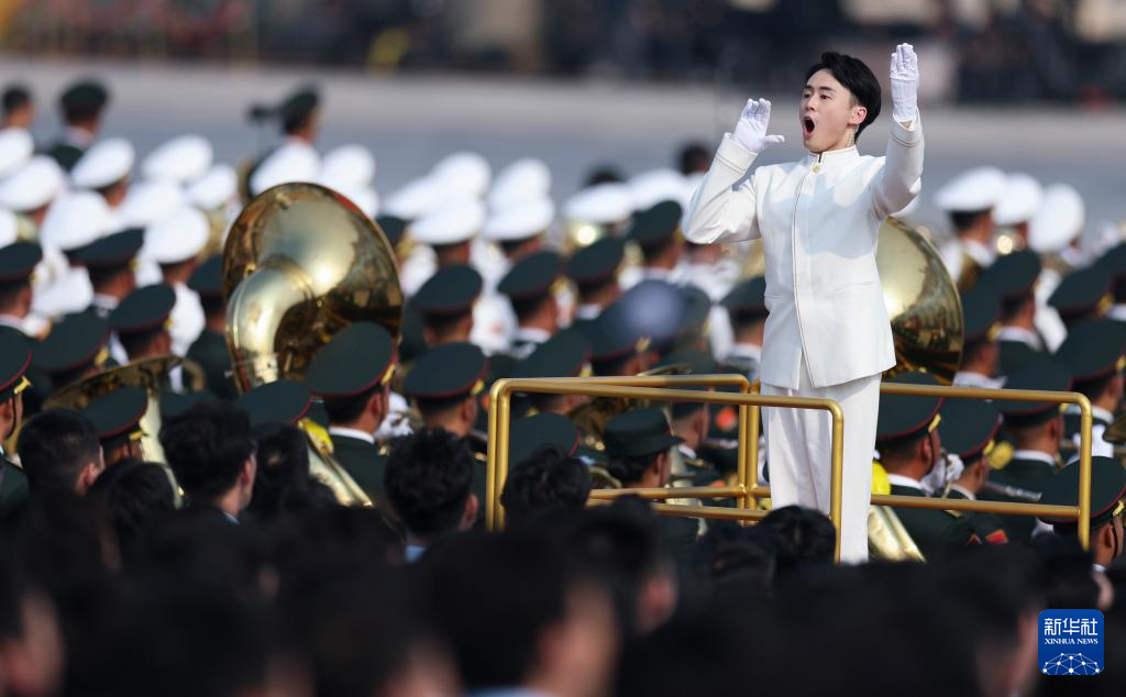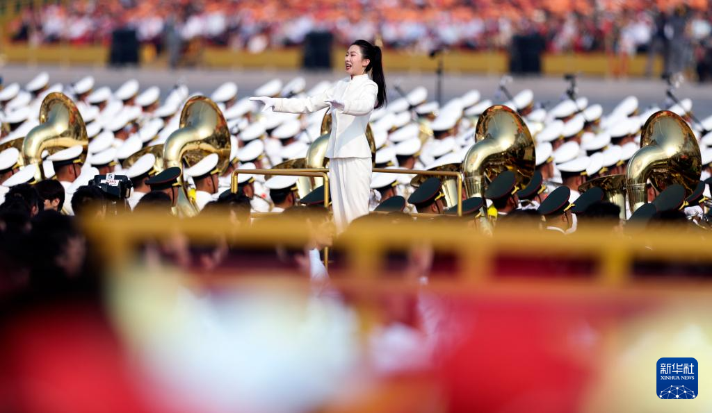 9月3日,纪念中国人民抗日战争暨世界反法西斯战争胜利80周年大会在北京隆重举行。这是中国人民解放军联合军乐团与合唱团在奏唱乐曲。