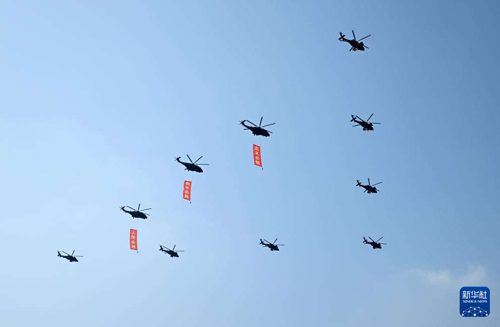 9月3日,纪念中国人民抗日战争暨世界反法西斯战争胜利80周年大会在北京隆重举行。这是空中护旗梯队。