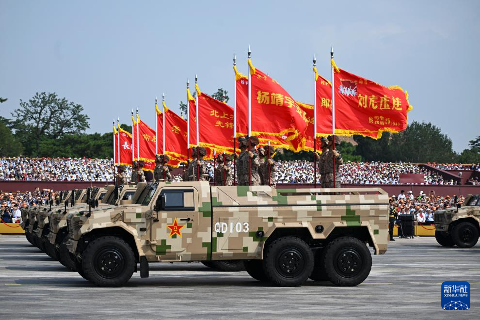 9月3日,纪念中国人民抗日战争暨世界反法西斯战争胜利80周年大会在北京隆重举行。这是战旗方队接受检阅。