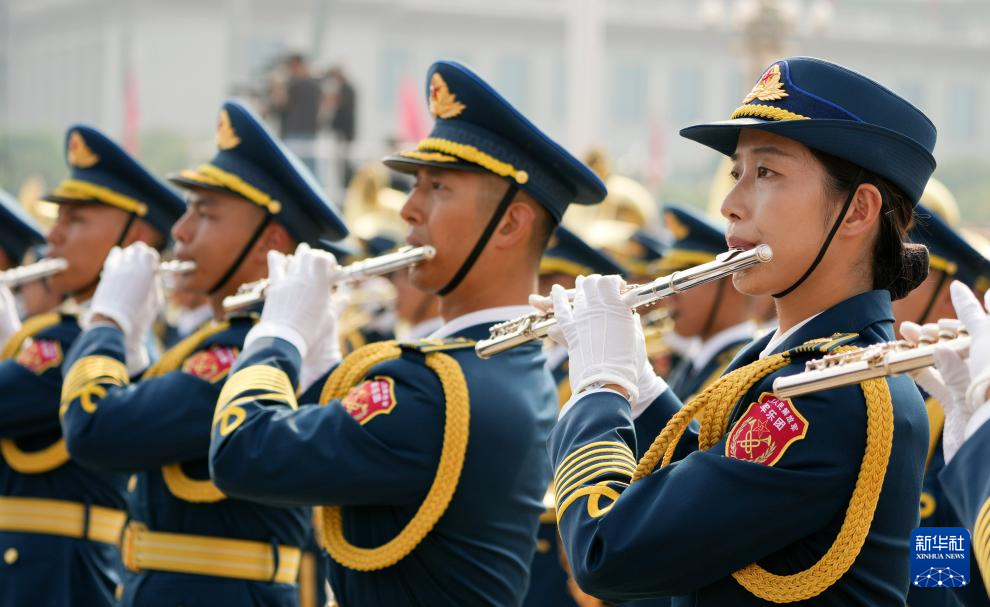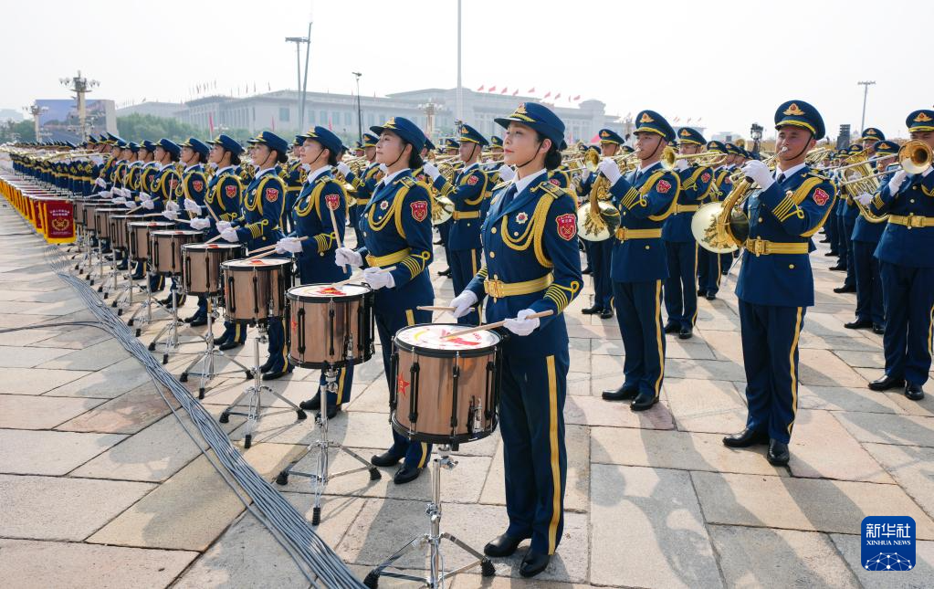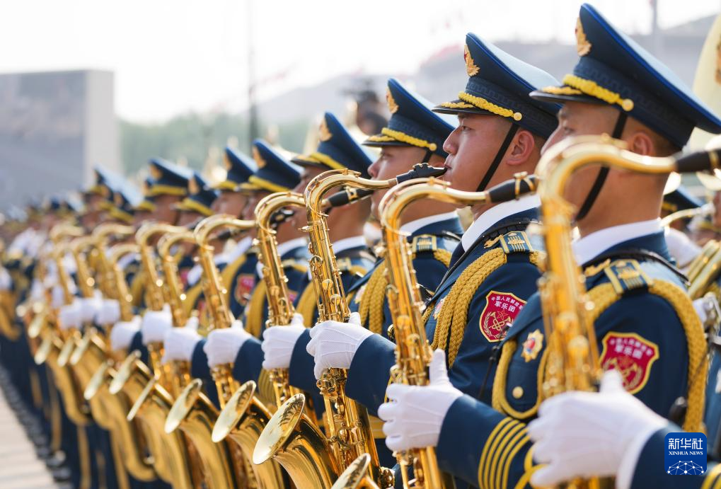 9月3日,纪念中国人民抗日战争暨世界反法西斯战争胜利80周年大会在北京隆重举行。这是中国人民解放军联合军乐团在演奏。